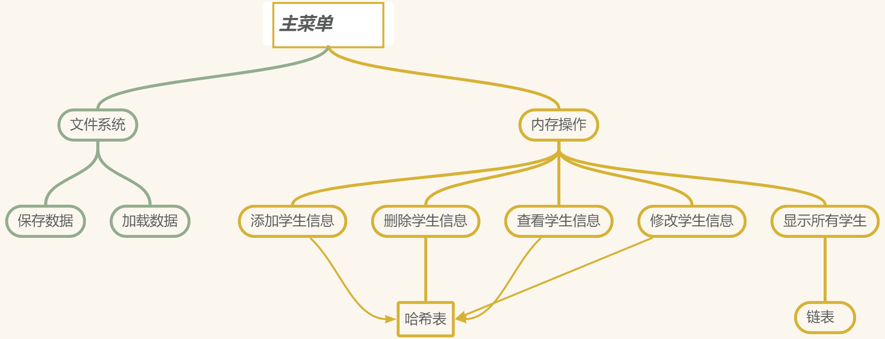 学生信息是在内存中通过指针建立了两种不同的组织结构:一种是以哈希表为基础,用于快速查找;另一种是以全局链表为基础,用于整体遍历。这两种结构共享同一批学生数据节点,从不同角度组织这些数据,以满足不同场景下的操作需求。